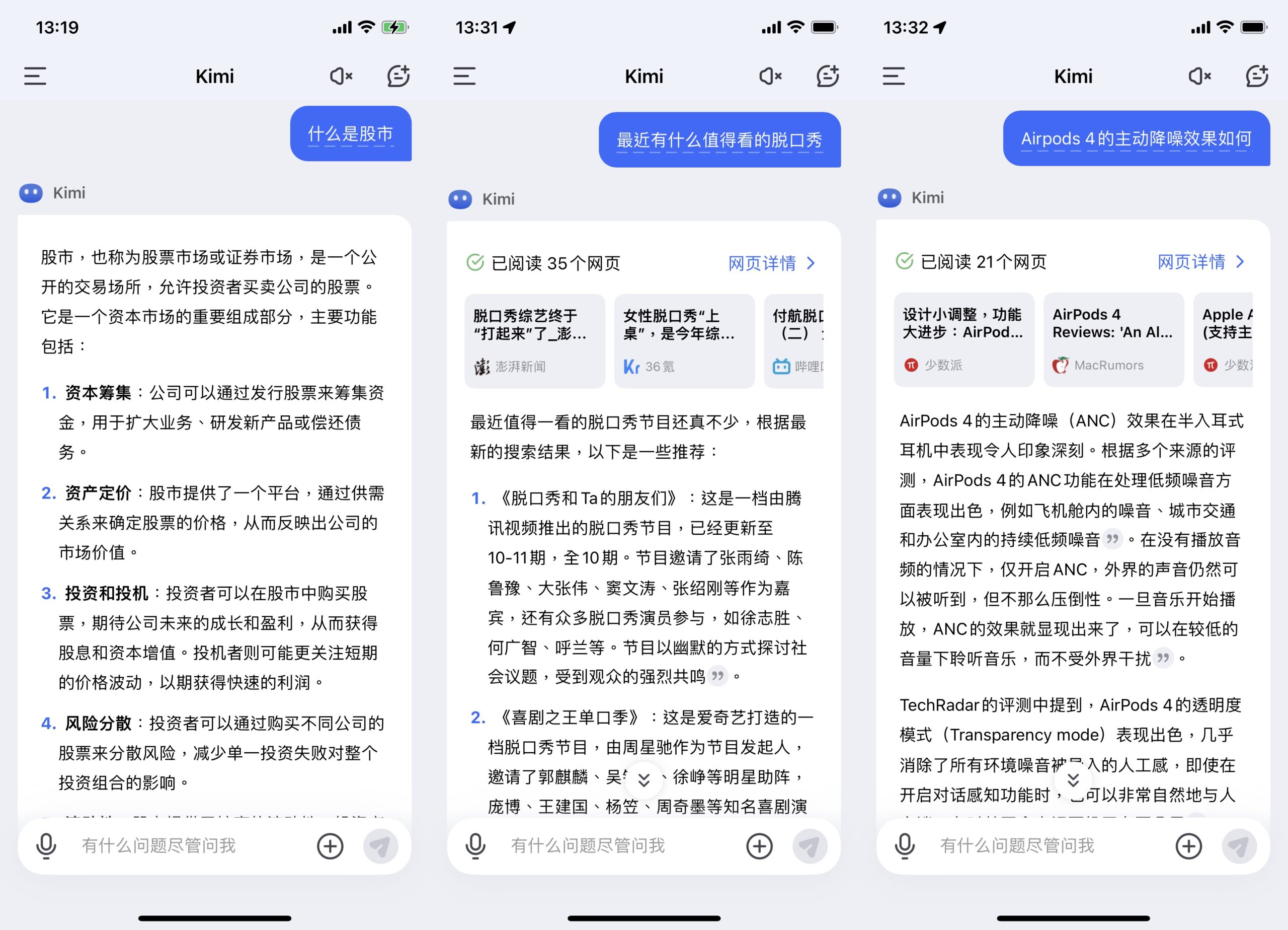 相较于传统的查找引擎,Kimi 在了解用户目的方面表现出色。在测验中咱们提出了几个问题,Moonshot AI 都能敏捷供给精确且相关的成果。