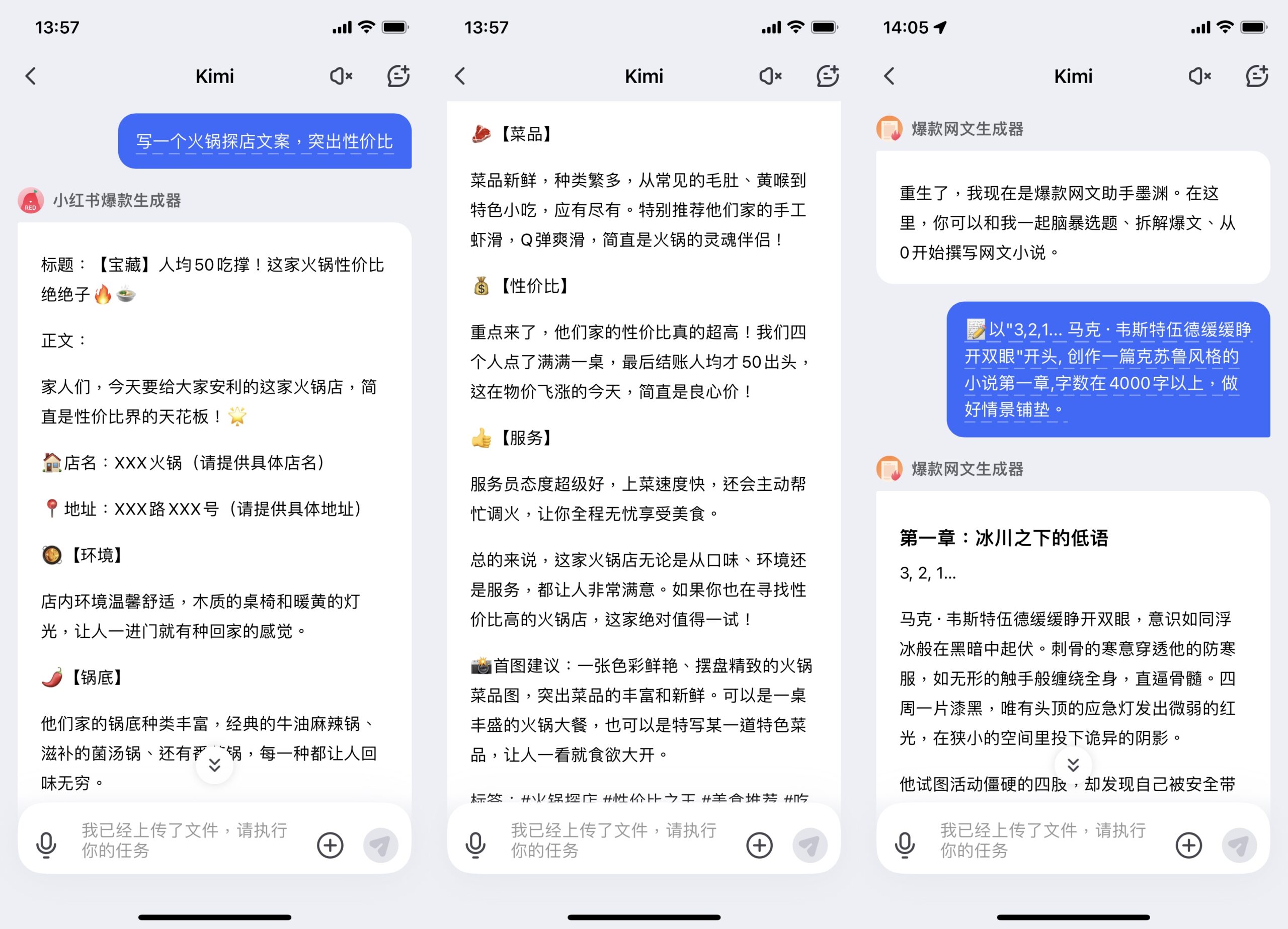 小红书探店案牍、网文……这些内容关于 Kimi 来说能够说是小菜一碟,咱们尝试了两个论题,它都通过了检测。